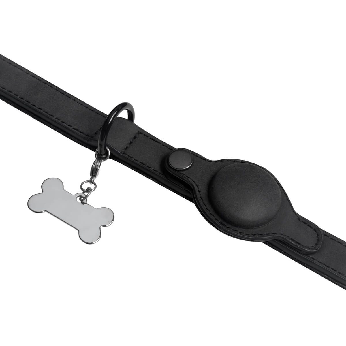 Collar para perro fabricado en material de curpiel, su tamaño lo hace ideal para razas medianas. Incorpora un discreto compartimento que permite insertar un dispositivo para localizar a tu mascota, te ayudará a mantenerla siempre localizada. Además de ser elegante y cómodo, ofrece la durabilidad necesaria para el uso diario, combinando seguridad y estilo en un solo accesorio. Incluye placa en forma de huesito.