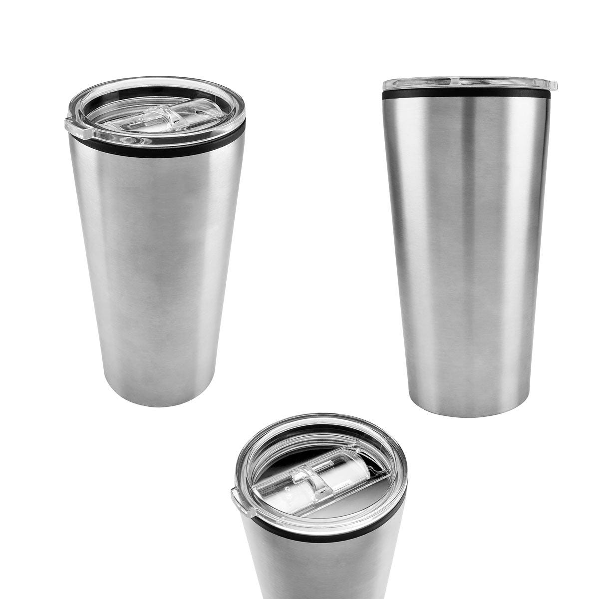 Doble pared. Pared interior plástico, pared exterior acero inoxidable. Tapa de plástico con válvula de seguridad. Incluye caja individual.